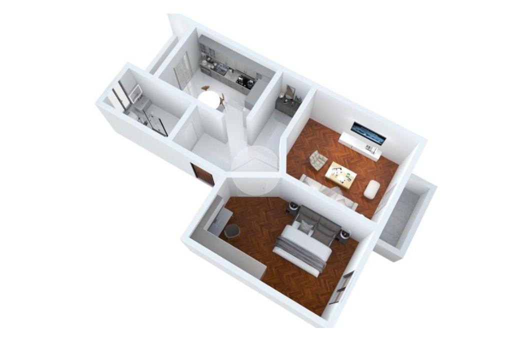 La zona giorno è separata dalla zona notte, assicurando privacy e comfort. Le due camere sono di generosa metratura, una con balcone e l'altra con finestra. La disposizione interna e la mancanza di muri portanti consentono di ristrutturare gli ambienti a proprio gusto.